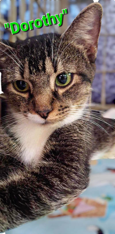 Dorothy is a very laid-back girl, who likes to just chill, watch the world go by and loves getting attention. She doesn't seem to be super playful or high energy.